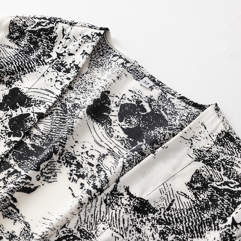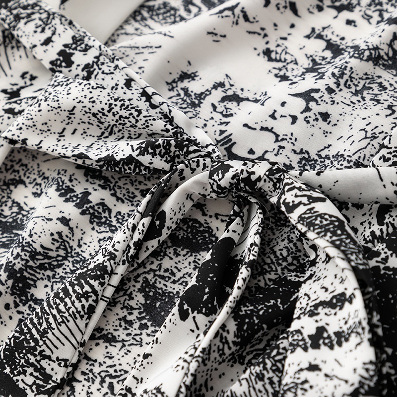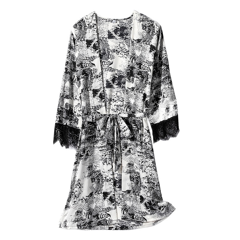 Nightgown Women Spring And Summer Medium And Long Thin Pajamas Long-sleeved Silk Bathrobe Sexy Printed Home Clothes