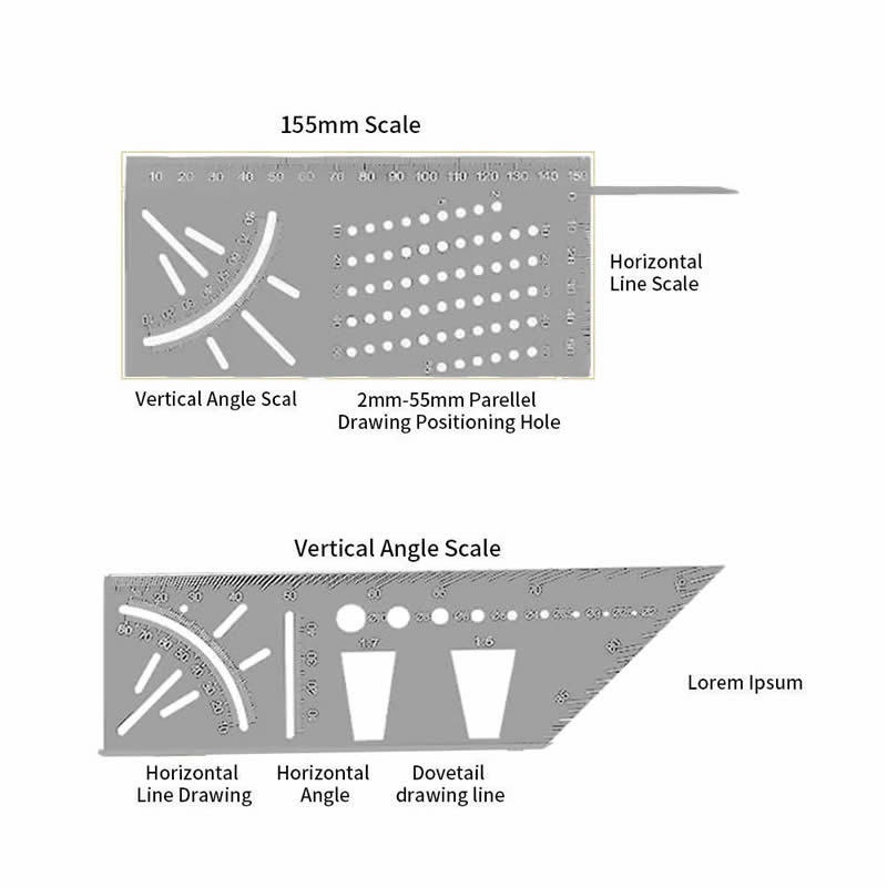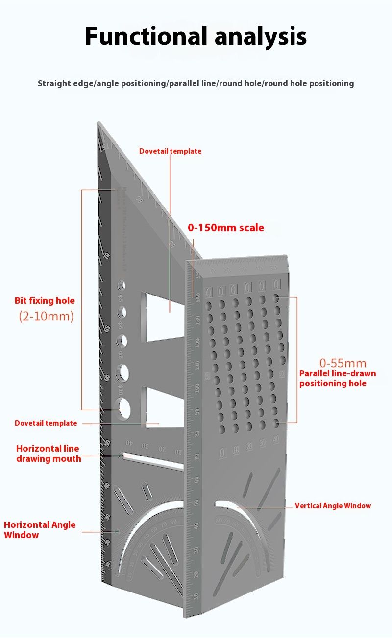 Multifunctional Woodworking Square Ruler45 Degree90 Degree Ruler3 DStop Rule Dovetail Tenon3 DLine Drawing Device
