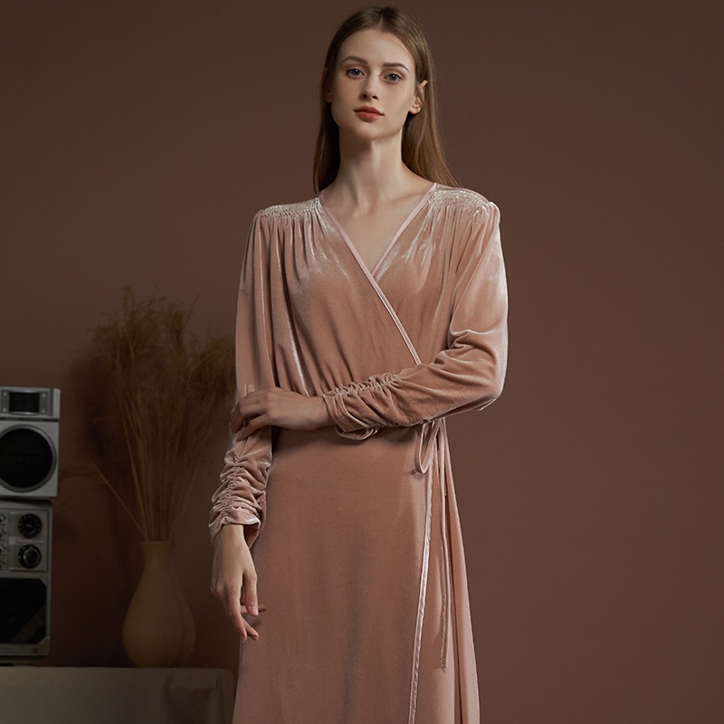 Bridal Gown Long Nightgown Female Autumn And Winter Velvet Gorgeous Nightgown V-neck Long Sleeves Can Be Worn Outside Home Clothes