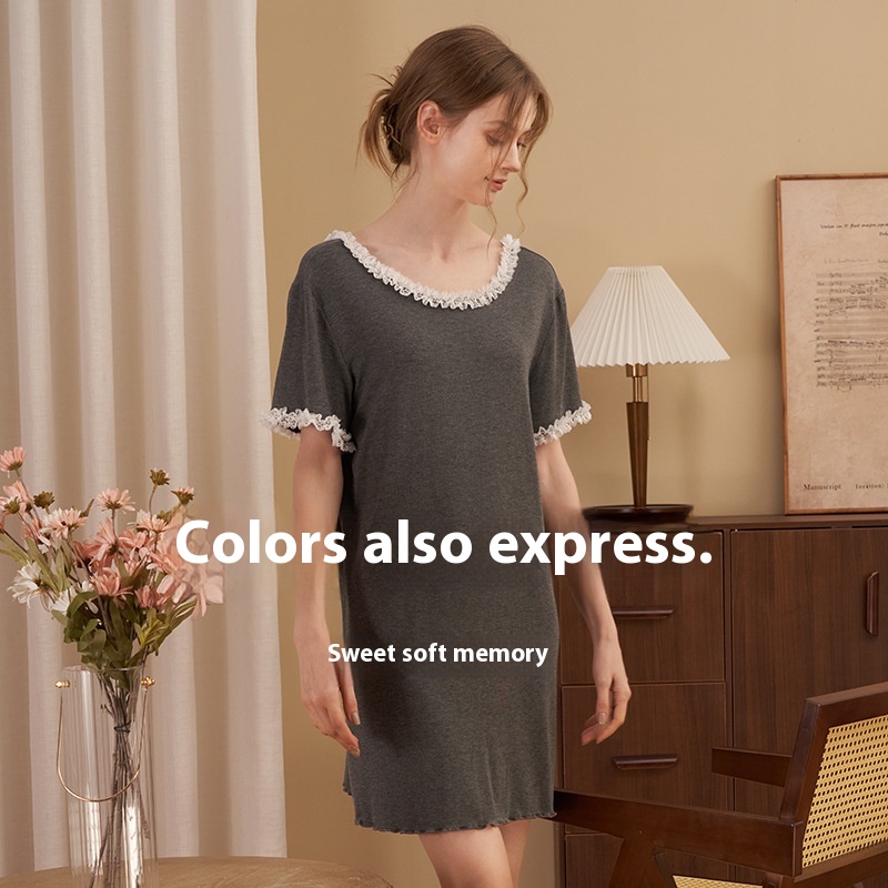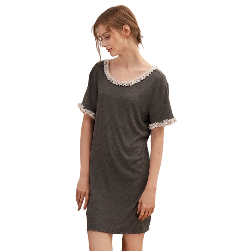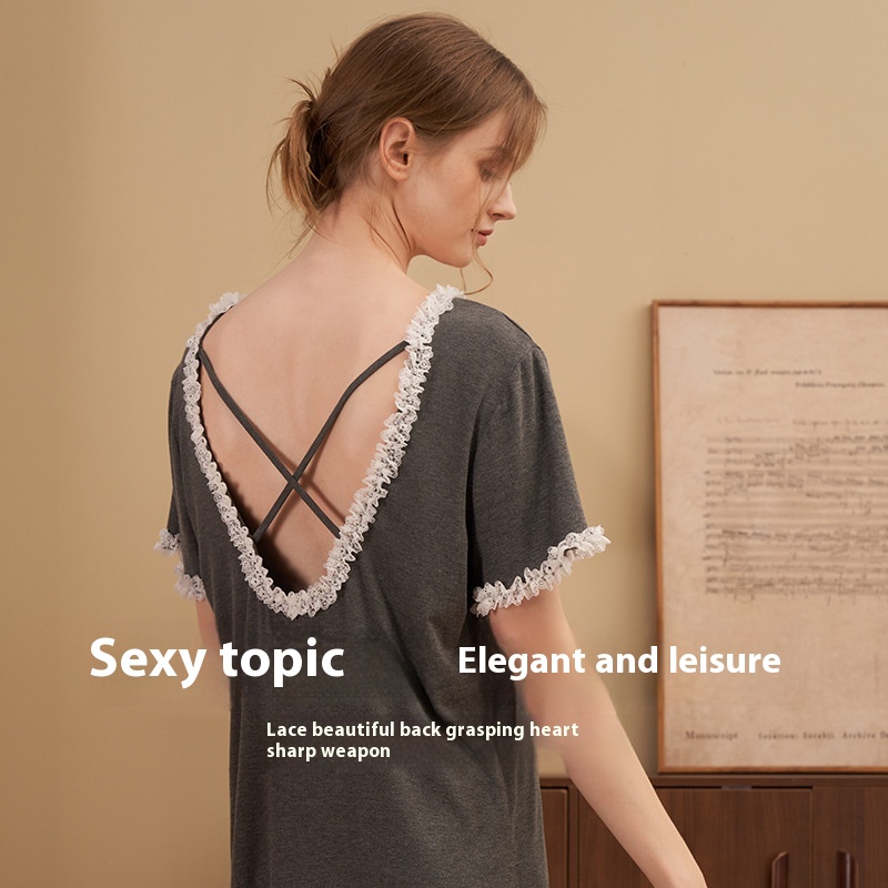 Modal Lace Short-sleeved Nightdress For Women Summer Backless Sexy Design Solid Color Dress Home Clothes