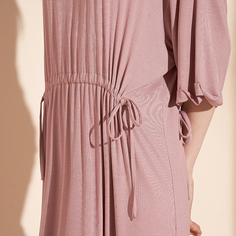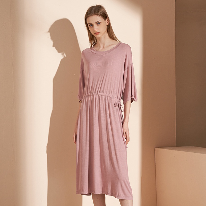 Mid-length Nightdress Women's Summer Style Solid Color Ribbed Modal Pajamas Round Neck Short Sleeve Elastic Waist Home Clothing