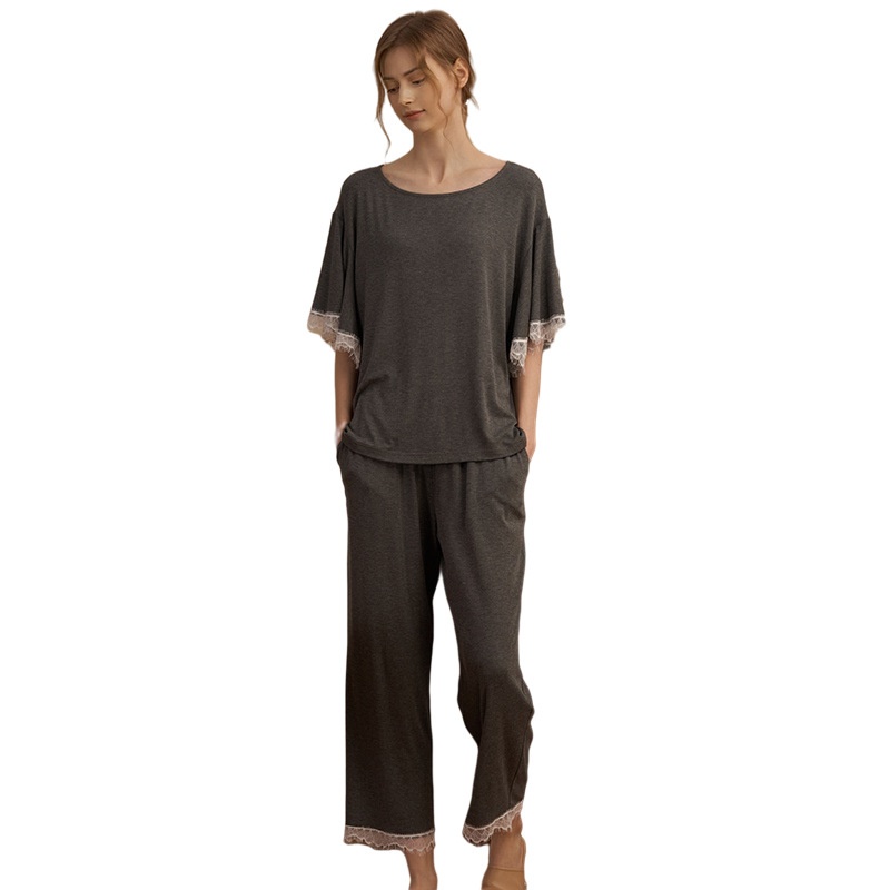 Spring And Summer Style Bell Sleeve Home Clothes Pajamas Women Short Sleeve Home Pajamas Lace Trousers Women Two-piece Set