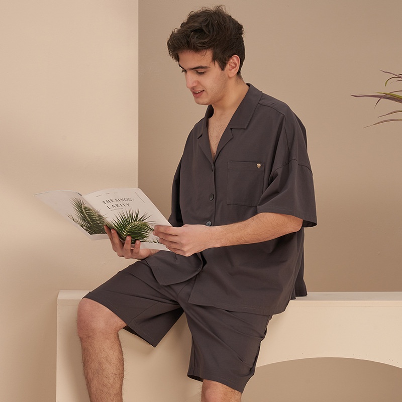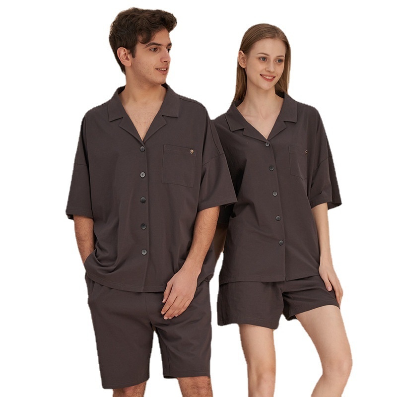 Couple Pajamas Men's Spring And Summer Short-sleeved Solid Color Hong Kong Style Retro Can Be Worn Outside Men's Pajamas Cotton Home Clothes Two-piece Suit
