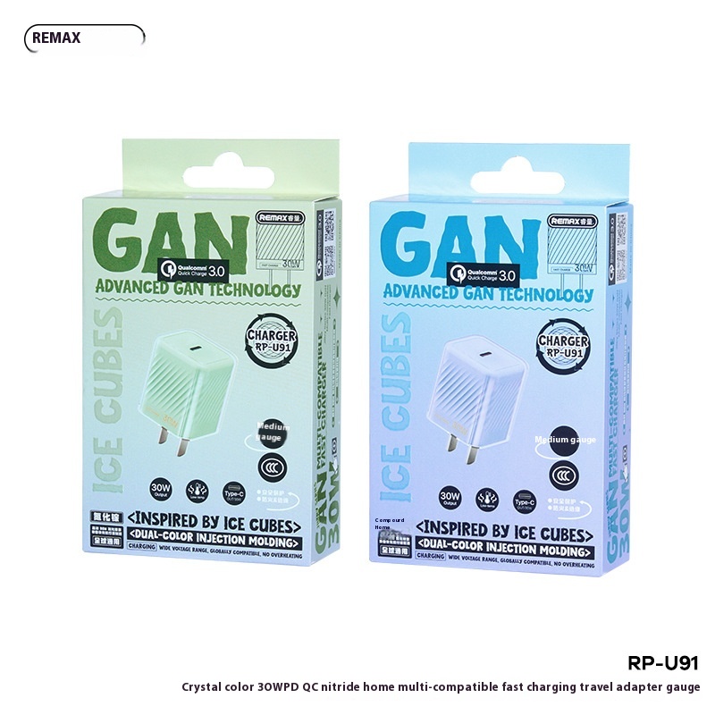 REMAXCrystal Color30 WGa NSingle CMulti-compatible Fast Charge Chinese Standard European Standard British Standard Travel Charger RP-U91
