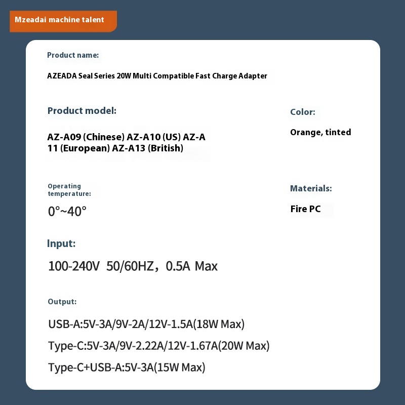 AZEADAMulti-port Fast Charging Gallium Nitride Ga NCharging Head PD20 WUltra-fast Charging Plug Mini Portable Charger