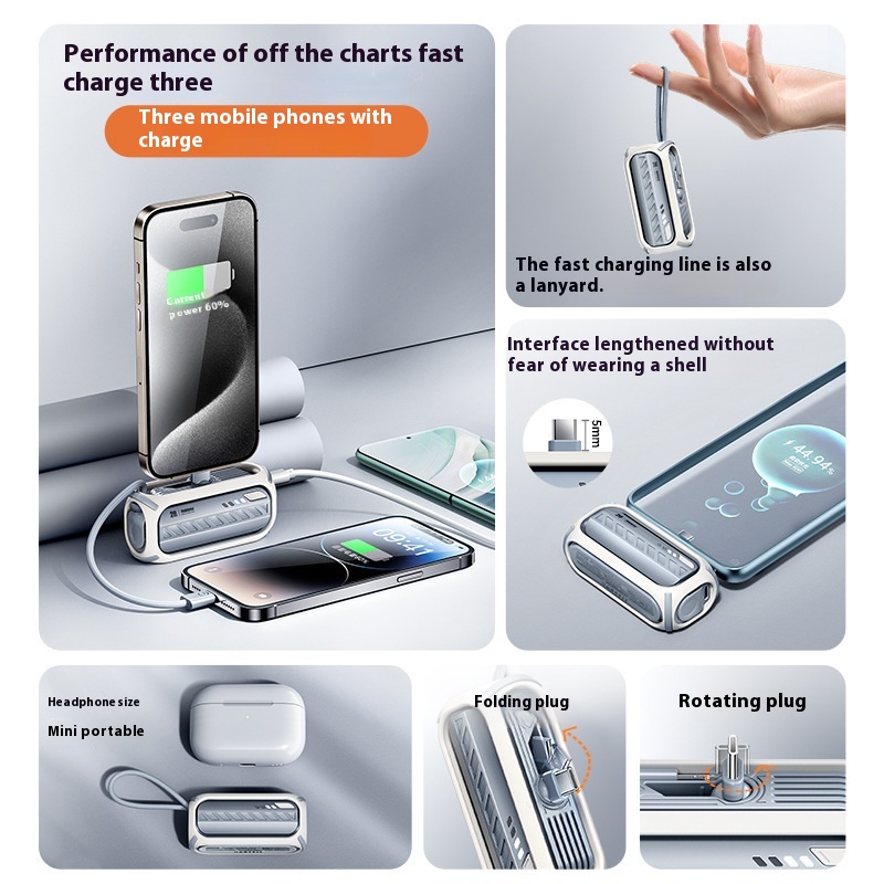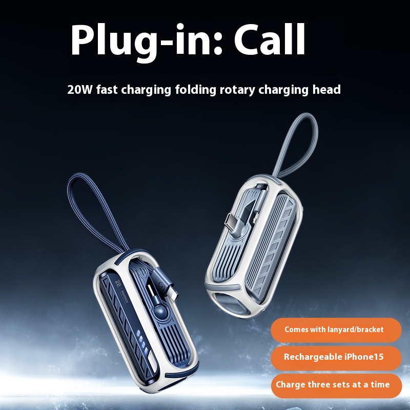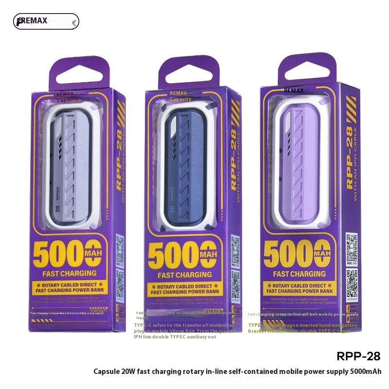 REMAXCapsule Emergency Power3 In1 With Built-in Wire PD20 WPower Bank Mini Rotating Foldable Mobile Power