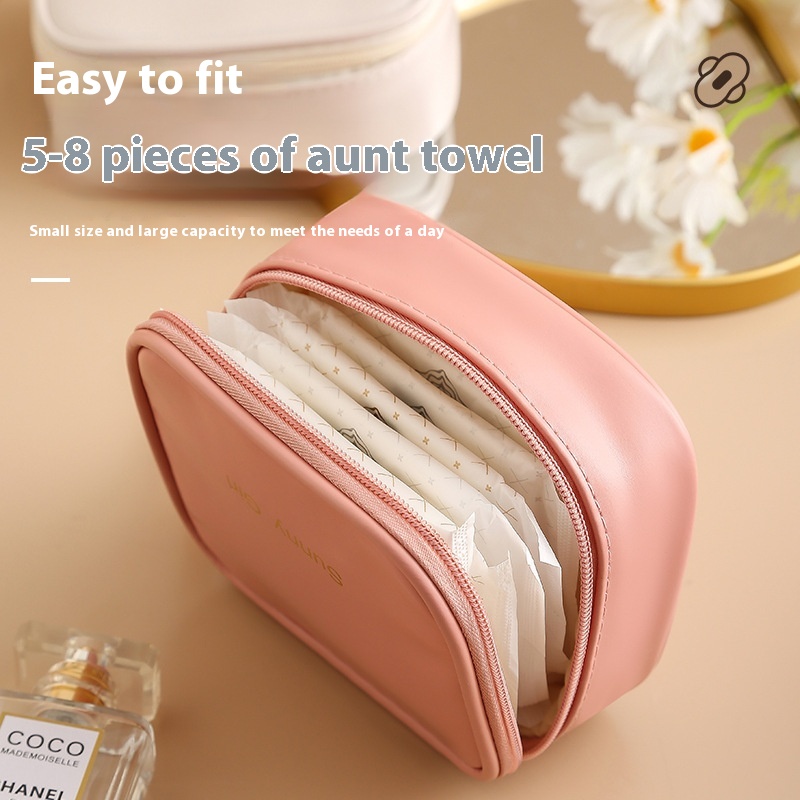 Waterproof PUSanitary Napkin Storage Bag Menstrual Bag Aunt Towel Portable Bag Mini PUMakeup Lipstick Bag