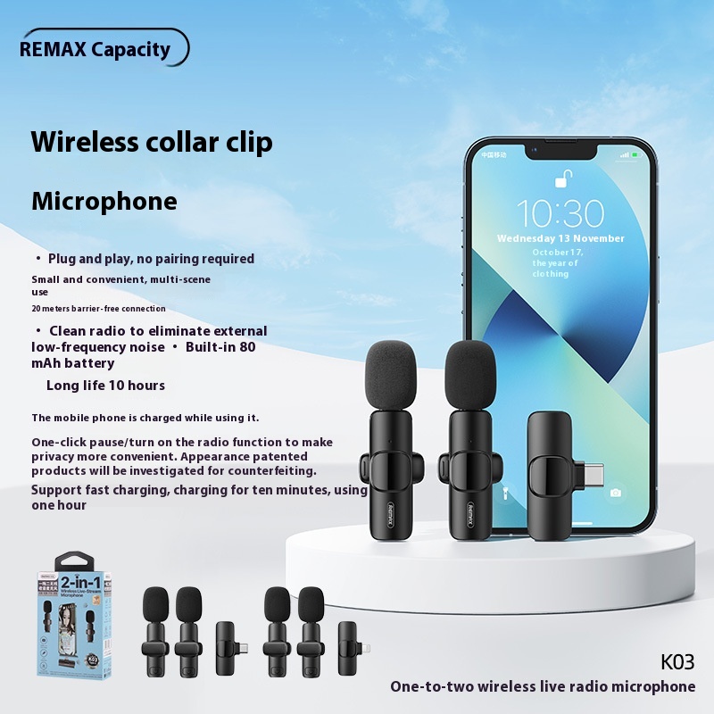 REMAXWireless Clip-on Microphone One-to-two Portable Mini Mobile Phone Small Microphone