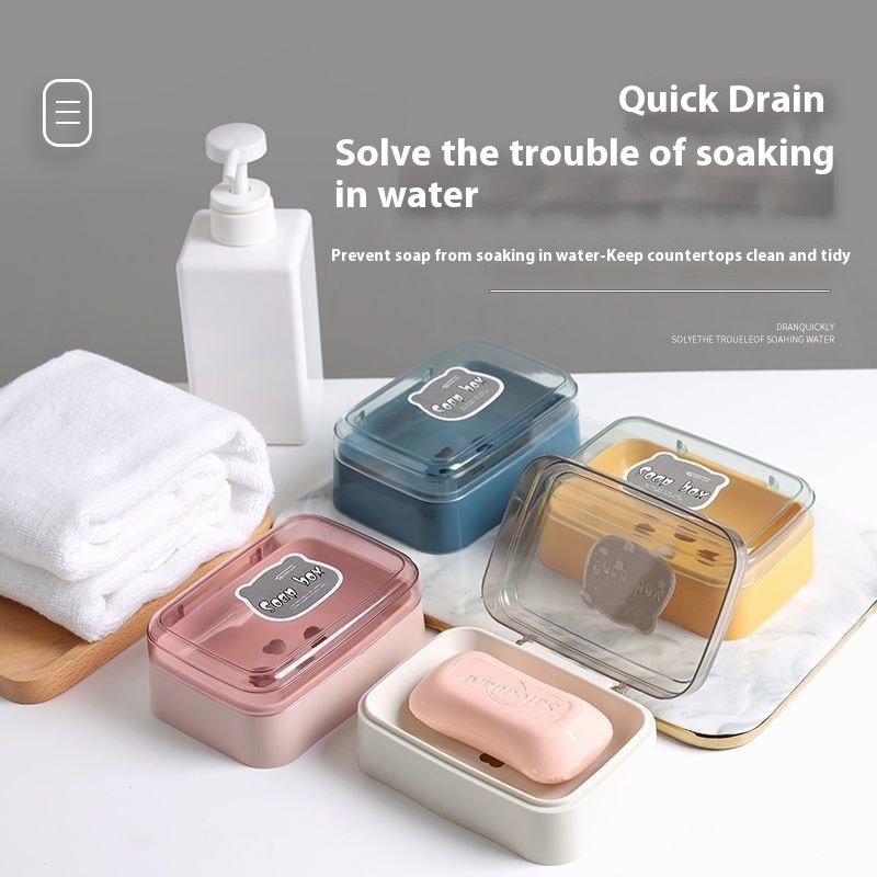 Cartoon Cute Soap Box Shelf Bathroom With Lid Storage Punch-free Wall-mounted Soap Box Rack