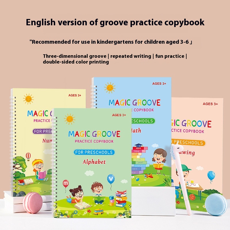 Large English Version Children's Groove Copybook Pen Control Training Exercise Book Full English Magic Copybook