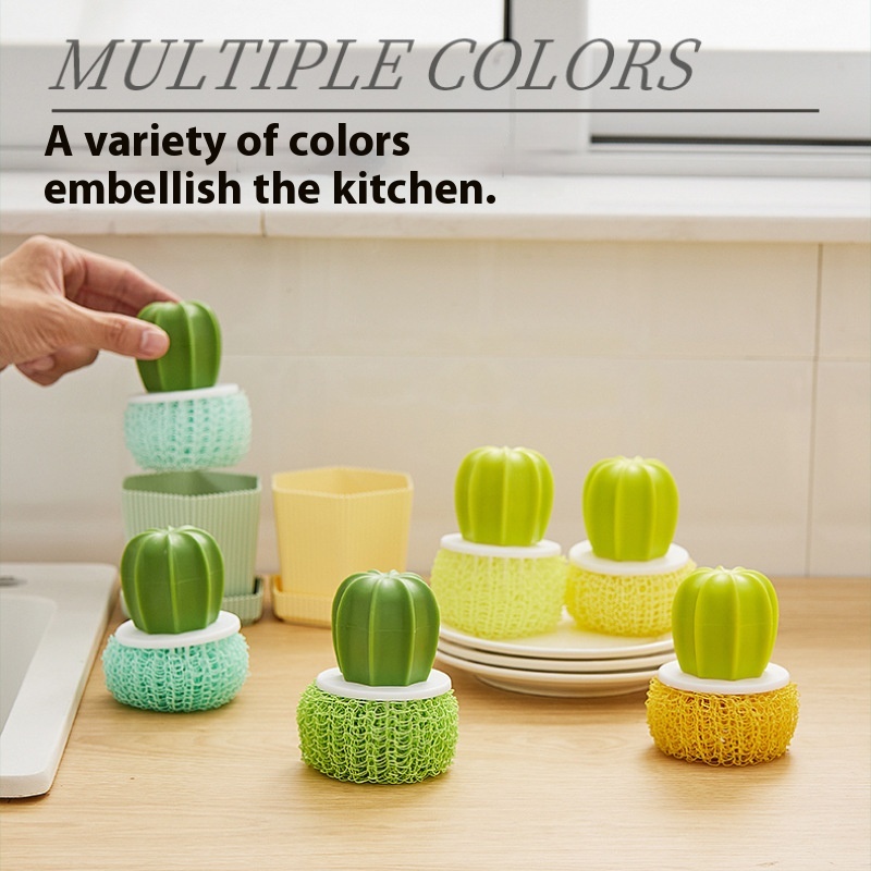 Creative Pot Brush Cactus Nano Cleaning Ball Gradient Color Cleaning Brush Pot Brush Cactus Pot Brush