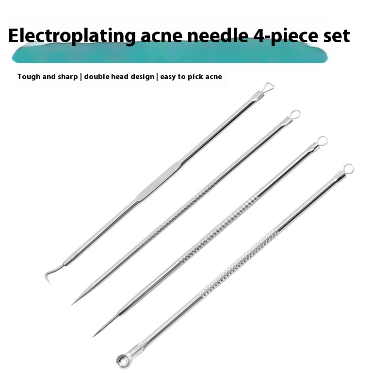 Electroplating Acne Needle4-piece Set Double-headed Blackhead Removal Beauty Needle Acne Needle Acne Squeeze Beauty Tools