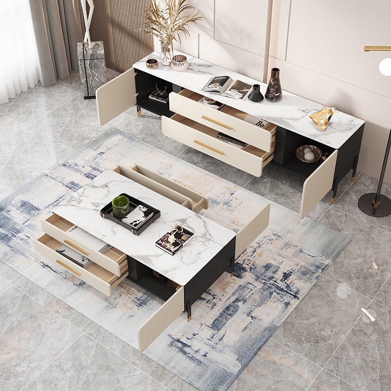 Italian Minimalist Sintered Stone Living Room Coffee Table And TVCabinet