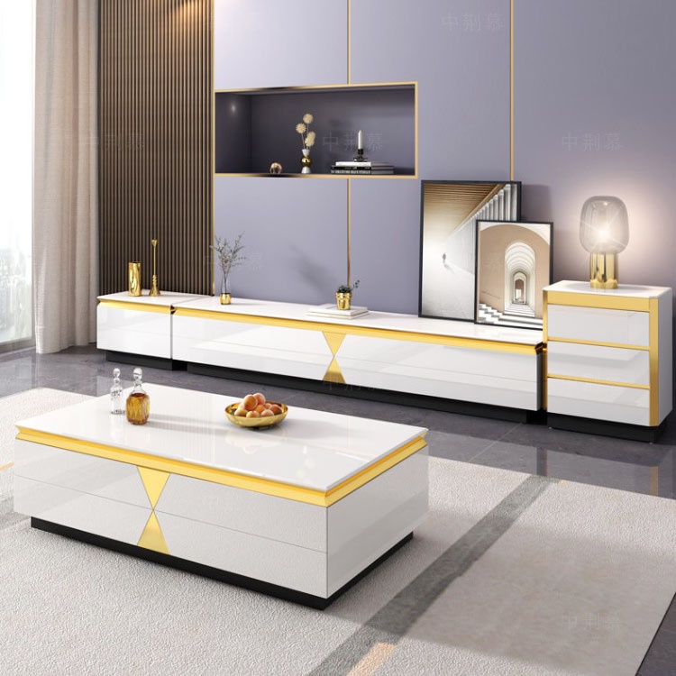 Luxury Combination Tempered Glass Modern Minimalist Coffee Table TVCabinet