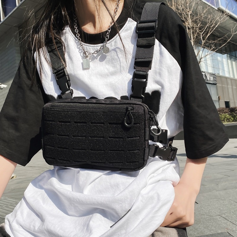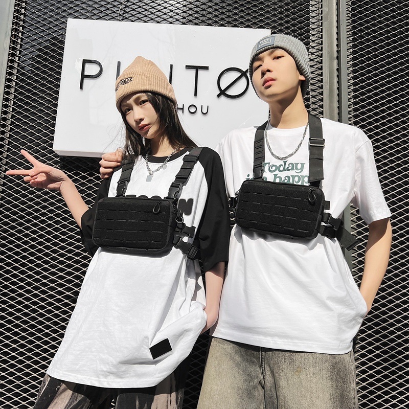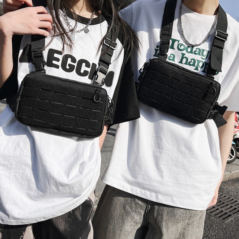 Hong Kong Style Motorcycle Vest Chest Bagy Cool Men And Women's Fashion Daily Commuting Single Shoulder Double Shoulder Vest Backpack