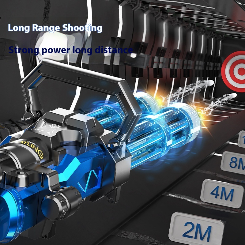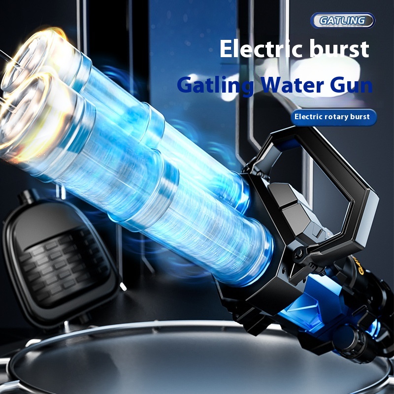 Gatling Electric Water Gun With Light Rotating Burst Water Toy With Backpack Large Capacity Outdoor Water Toy