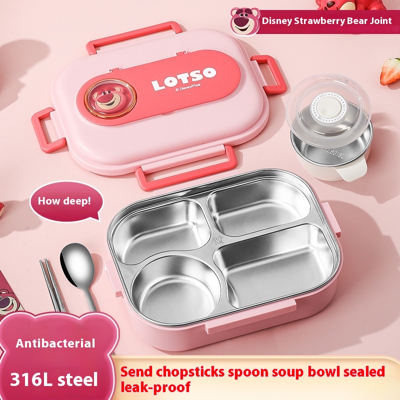 Strawberry Bear316 Stainless Steelulated Lunch Box,Children's Divided Food Container With Lid,Microwaveable Bento Box
