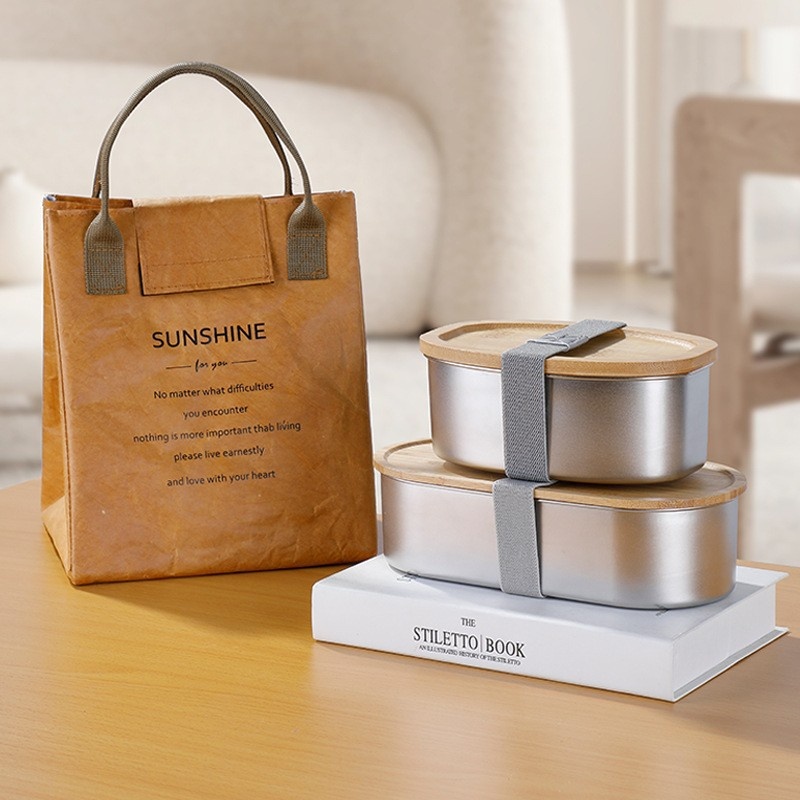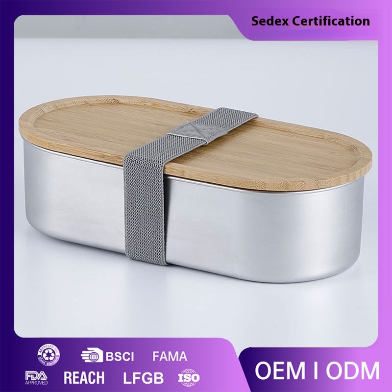 304 Food-Grade Stainless Steel Lunch Box With Bamboo Lid,Sealed Bento Box With Strap,Microwave Safe