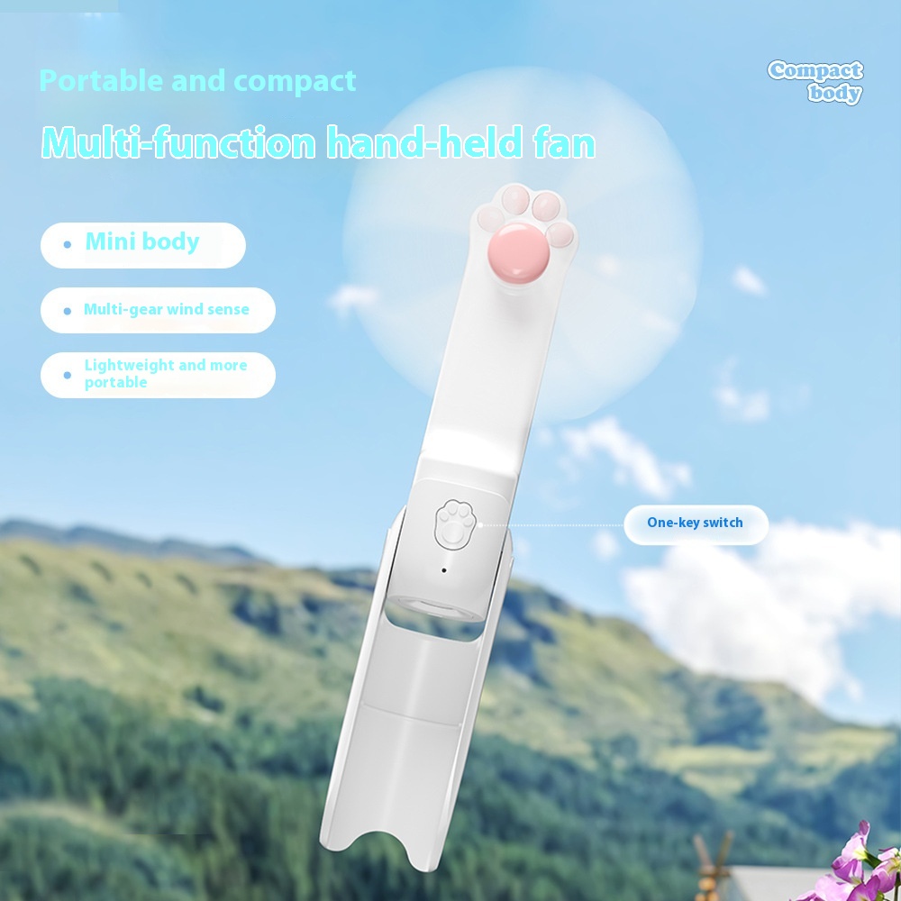 Cat's Paw Handheld Small Fan Portable Multi-function Flashlight Charging Treasure Foldable Silent Small Electric Fan