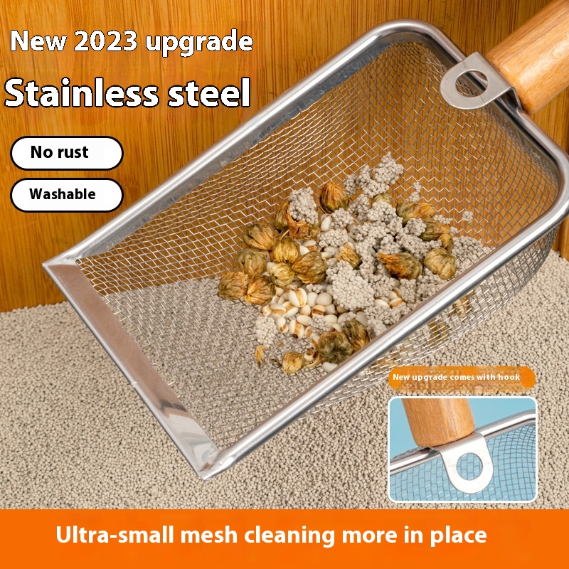 Stainless Steel Fine-Holed Cat Litter Scoop,Specially Designed For Bentonite And Metal Cat Litter,AMust-Have Tool For Cleaning Up Cat Waste