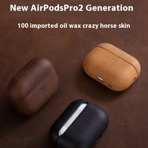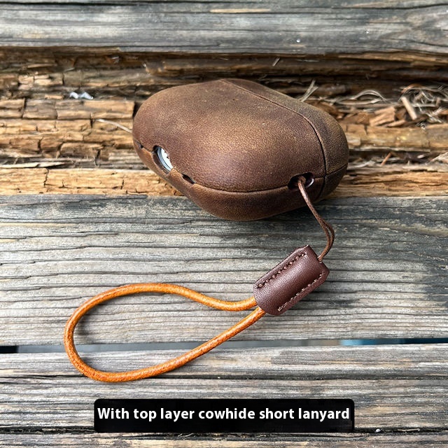Genuine Leather Protective Case For Apple Bluetooth Earphones,Crazy Horse Leather Second Generation Protection Cover With Hanging Rope,For Men