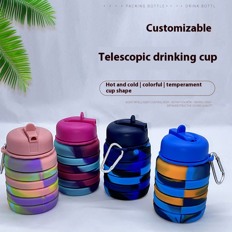Food-grade Silicone Folding Water Cup,Outdoor Portable Extendable Drinking Cup,Creative Camouflage Sports Water Bottle