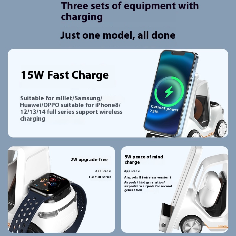 Mini Car Desktop Wireless Charger,Forklift Fast Charger,Suitable For Apple15 Watch And Phone Charging Stand