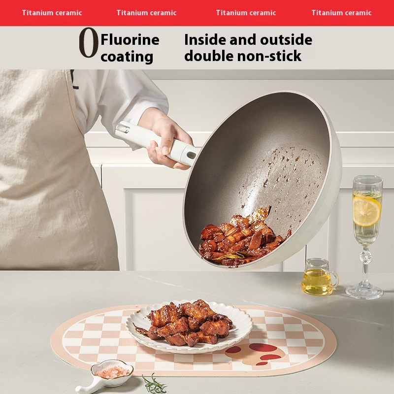 Titanium-coated Thickened Non-stick Frying Pan,Household Flat-bottom Frying Pan,Ceramic Frying Pan,Suitable For Gas Stoves And Induction Cookers