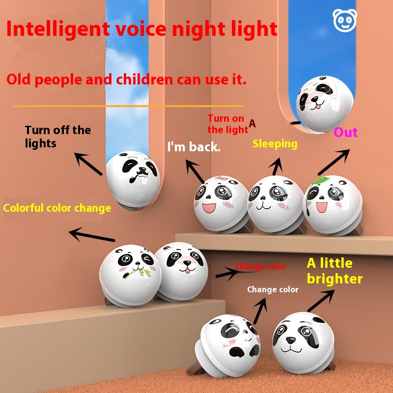 USBNight Light With Smiling Panda-Voice-Controlled Night Light,Eye Protection Color-Changing Smart Voice Lamp,Sound-Controlled Color Lamp With English Commands