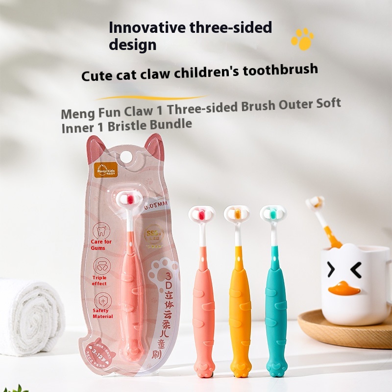 3 DThree-Sided Children's Toothbrush-Ultra-Fine Soft Bristles,Single Pack For Ages3-12,Gentle Dental Care Toddler Toothbrush