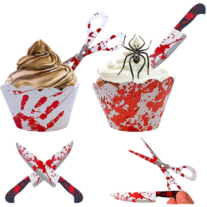 Halloween Cake Toppers And Wrappers-Pumpkin And Blood Hand Designs For Halloween Party Decorations
