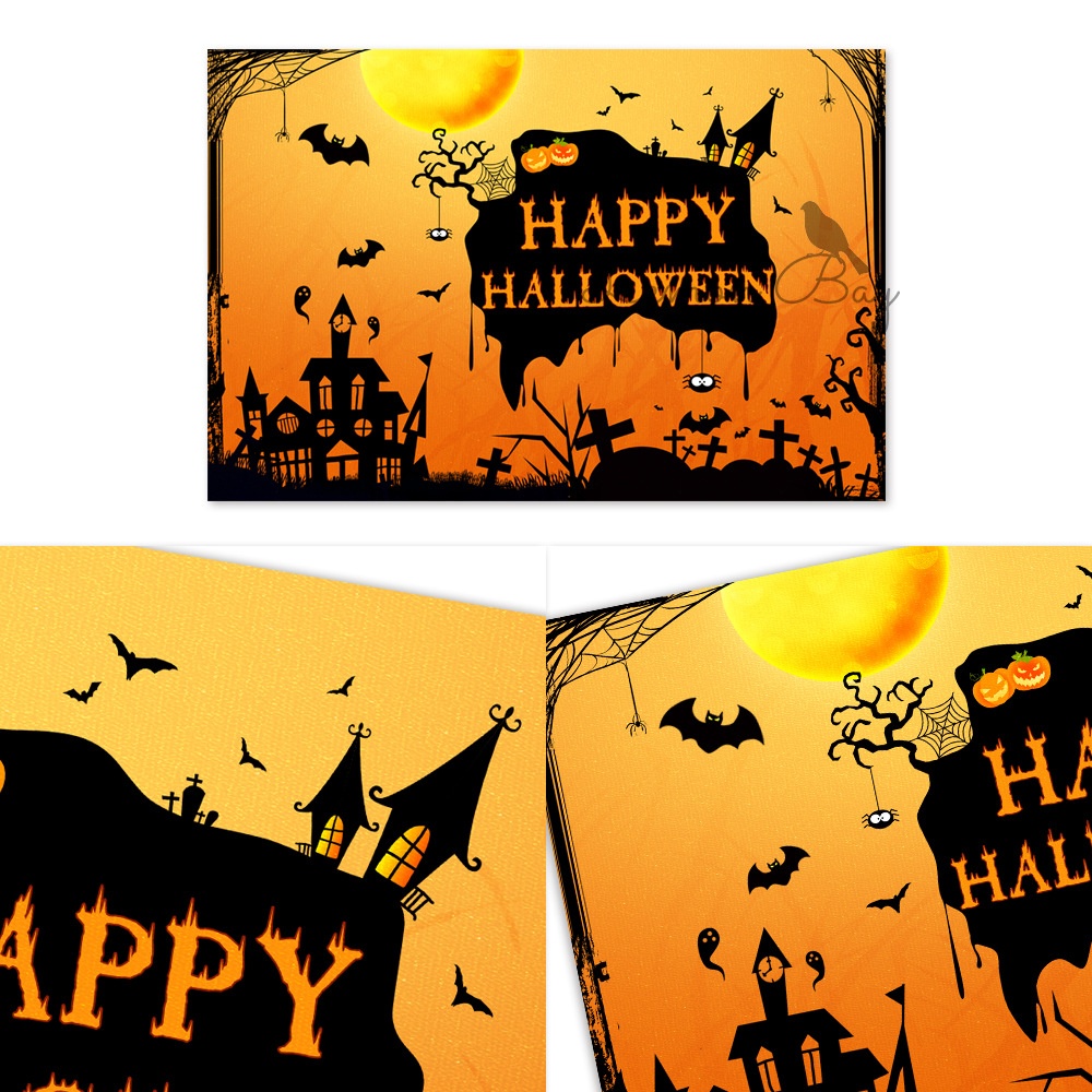 Happy Halloween Party Decoration Backdrop-Bat And Haunted House Theme Background Wall Setup