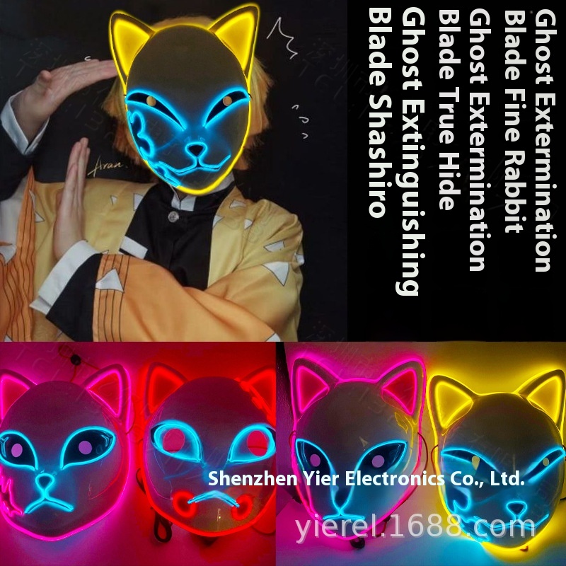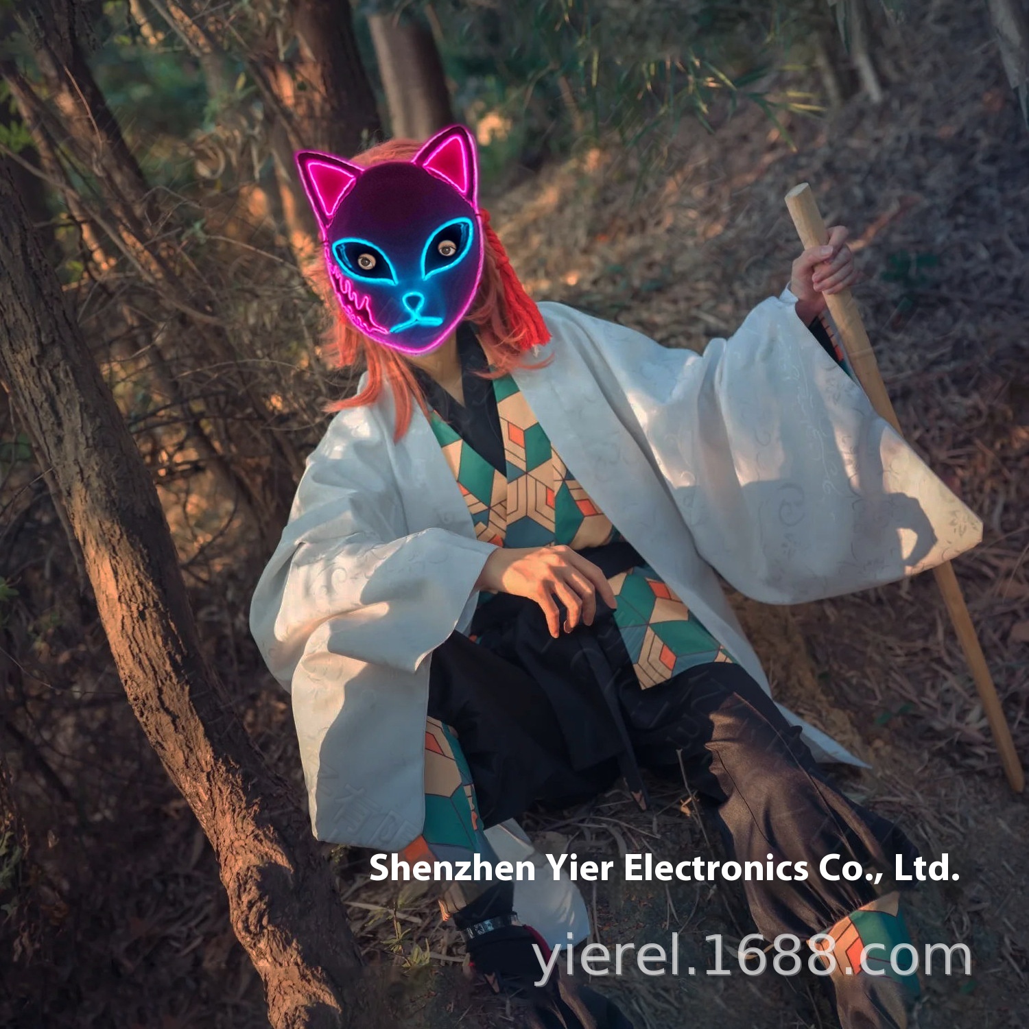 Glowing Mask Demon Slayer:Kimetsu No Yaiba Tanjiro Makoto Kamado Mask Halloween Party Cosplay Props