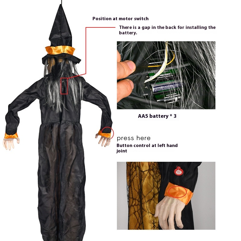 Halloween Sensor Witch Hanging Ghost Voice Control Touch Toy Haunted House Bar Scene Layout Decoration