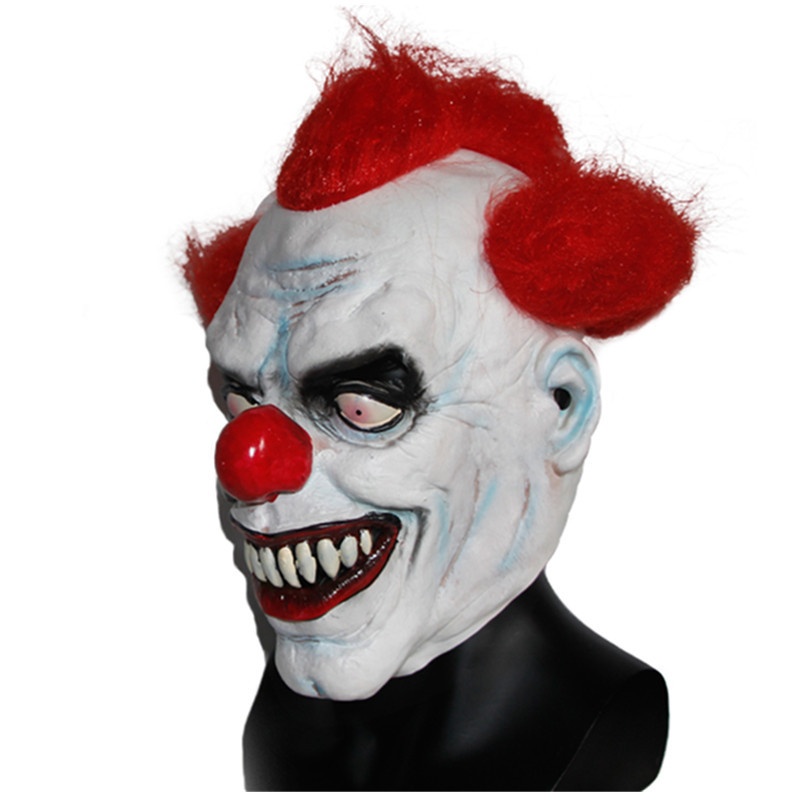 Halloween Horror Clown Mask Party Red Curly Hair Clown Latex Head Cover Dark Knight Costume Props