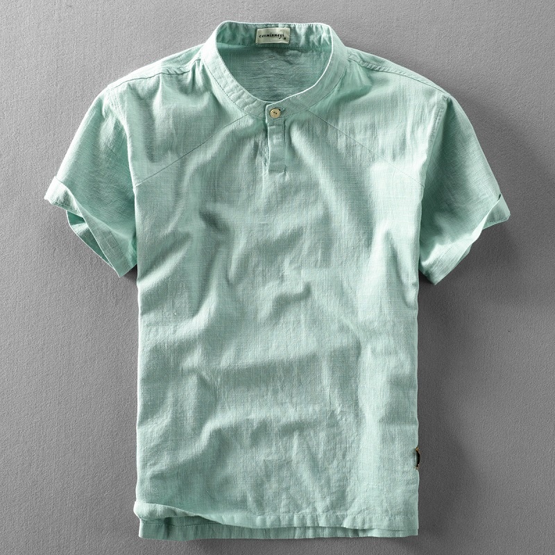 Dropshipping Summer Men's Linen Shirt Casual Chinese Style Loose Stand-up Collar Cotton And Linen Short-sleeved Shirt- Liu Zhi