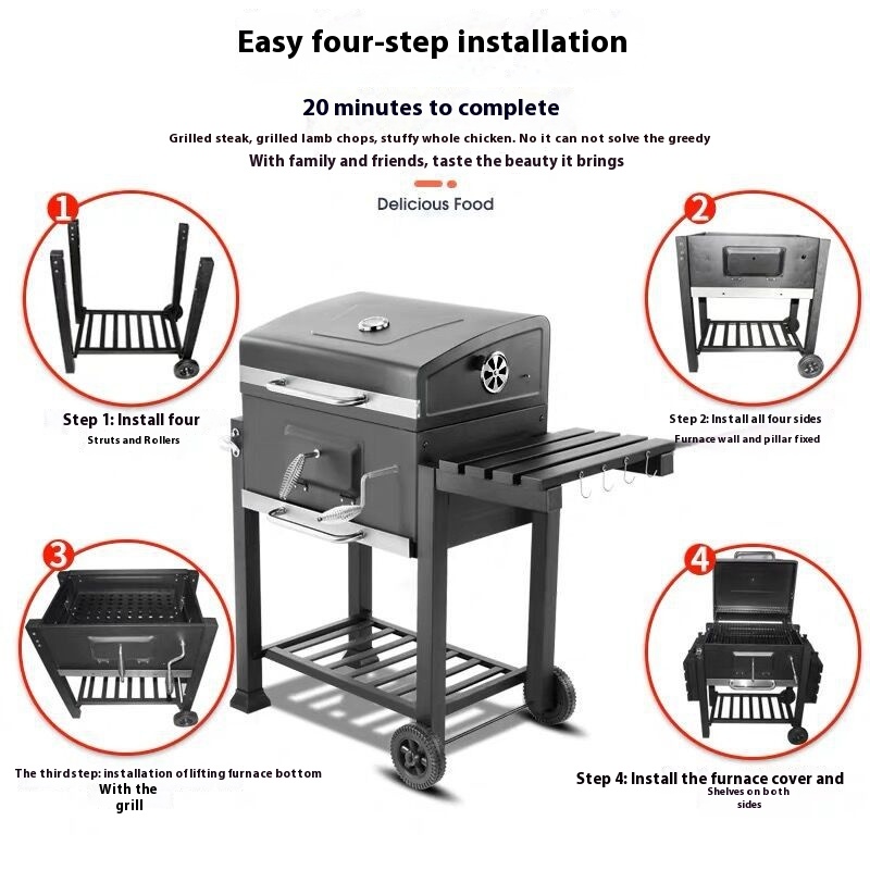 European And American Large Square Courtyard Barbecue Stove Villa Fire Pot Barbecue Grill Outdoor Household Charcoal BBQCamping Stove