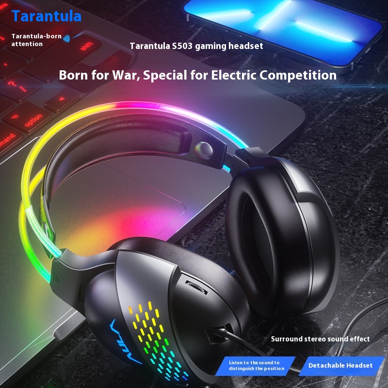 Wolf Spider S503 Computer Headset-Light-Up Over-Ear Headphones For Voice Teaching,streaming,Online Classes,And Gaming,y Design For Influencers