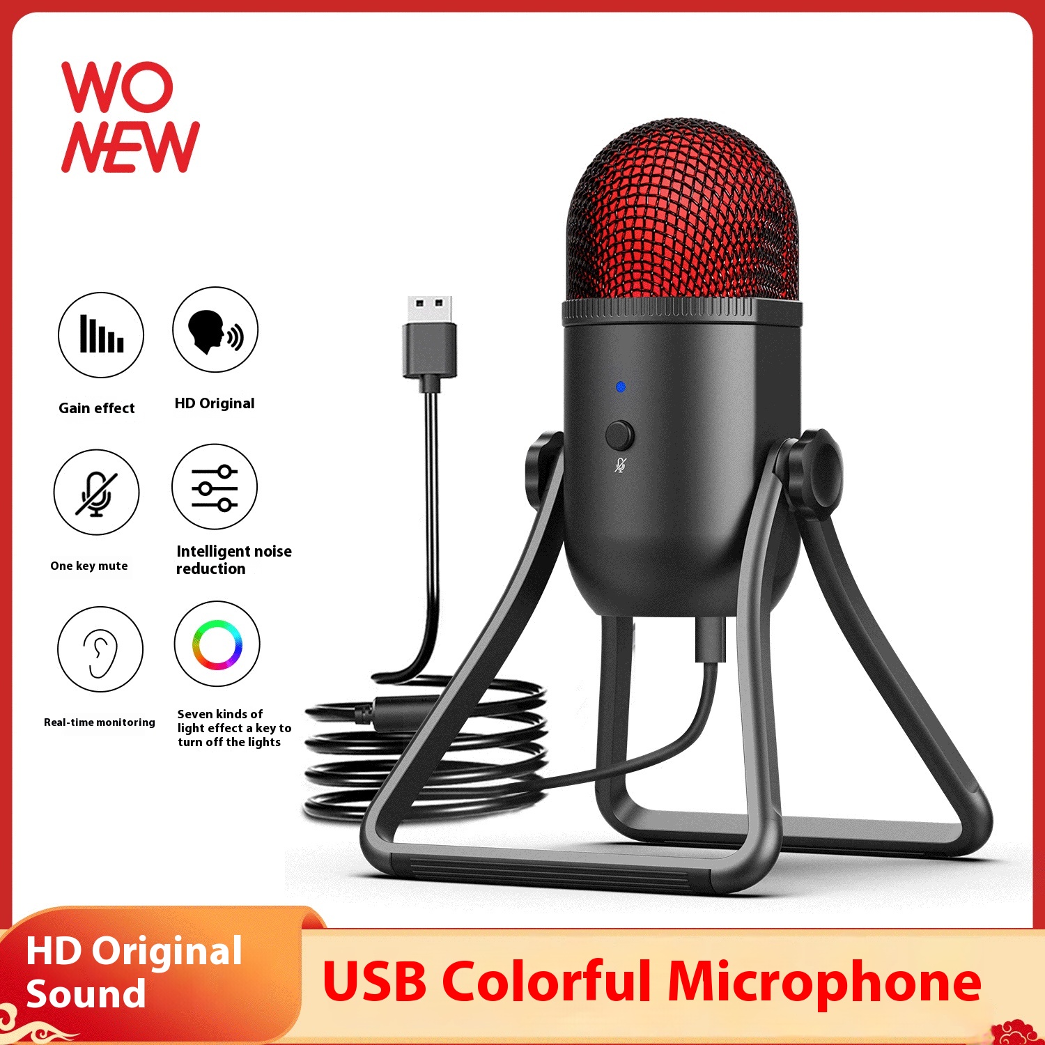 USBCapacitor RGBMicrophone Set Internet Celebrity Karaoke Recording Home Mobile Phone Computer Game Wired Microphone