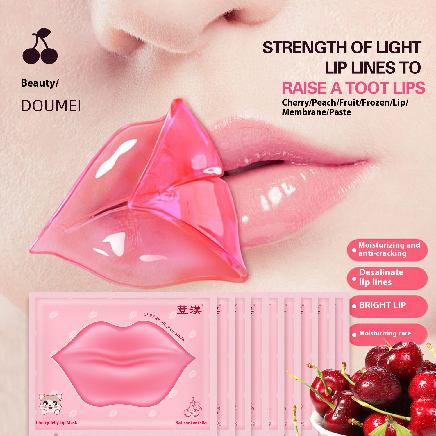 Doumei Cherry Jelly Lip Mask-Hydrating And Moisturizing,Enhances Lip Fullness,Reduces Lip Wrinkles,Lightens Dark Lips And Surrounding Area,Nourishing Lip Mask Patches