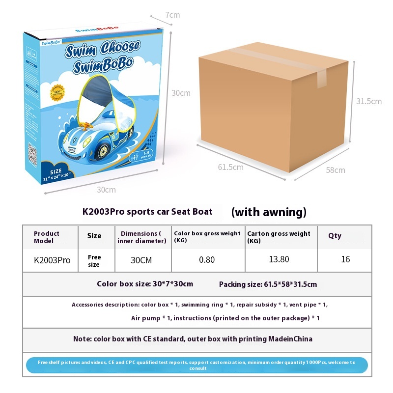Swimbobo Inflatable Car Seat Ring Children's Sports Car Swimming Ring With Sun Protection Awning Horn Seat Ring