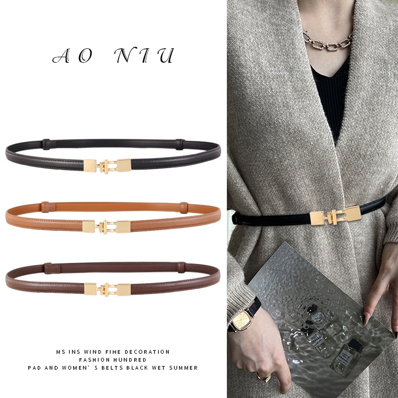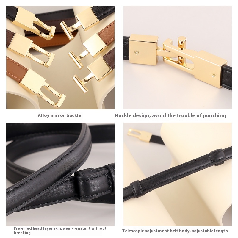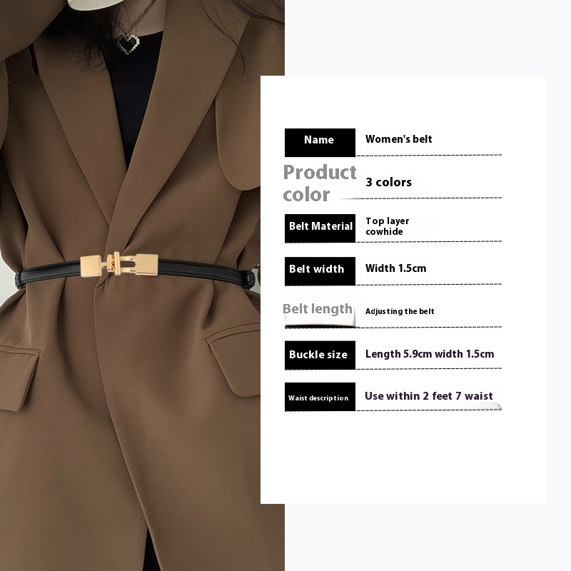 Genuine Leather Thin Belt For Women-Simple And Versatile Waist Belt,Perfect For Pairing With Dresses And Enhancing The Waistline