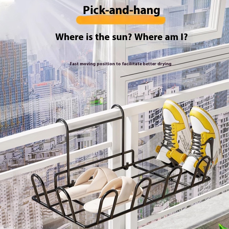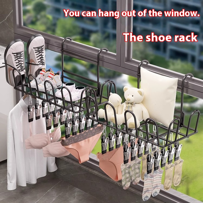 Balcony Clothes Rack Socks Drying Rack Household Multifunctional Shoe Drying Rack Clothes Basket Punch-free Window Clothes Rack