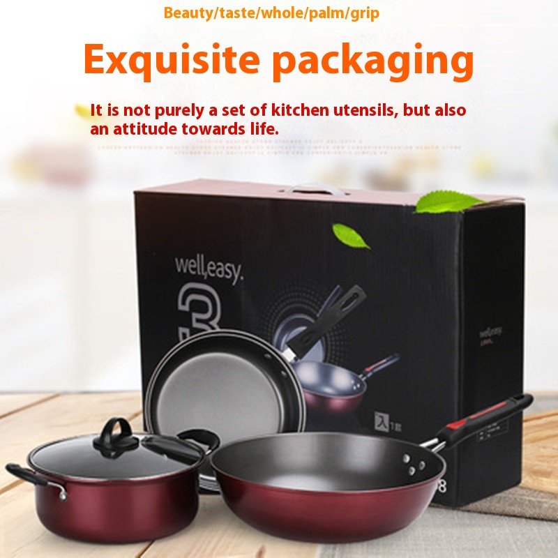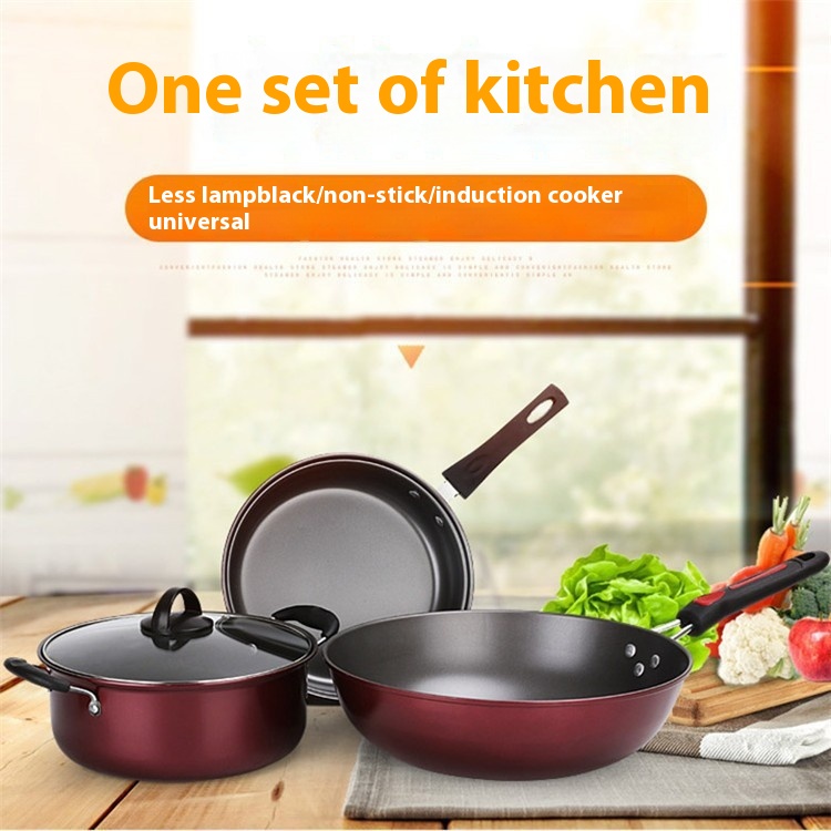 Non-stick Cookware Three-piece Set Household Kitchen Induction Cooker Pot Flat Bottom Frying Pan