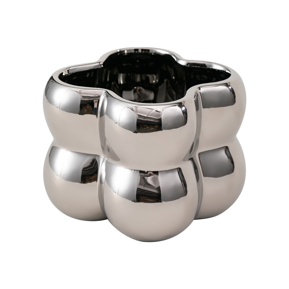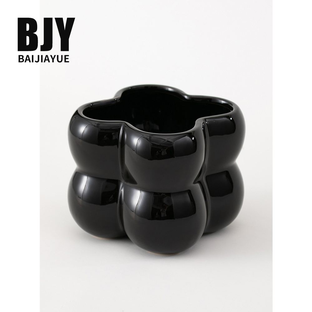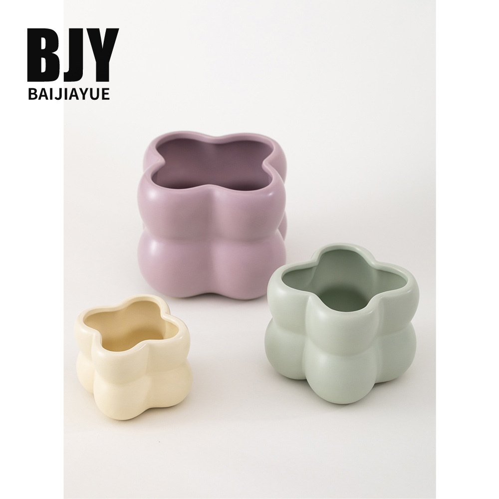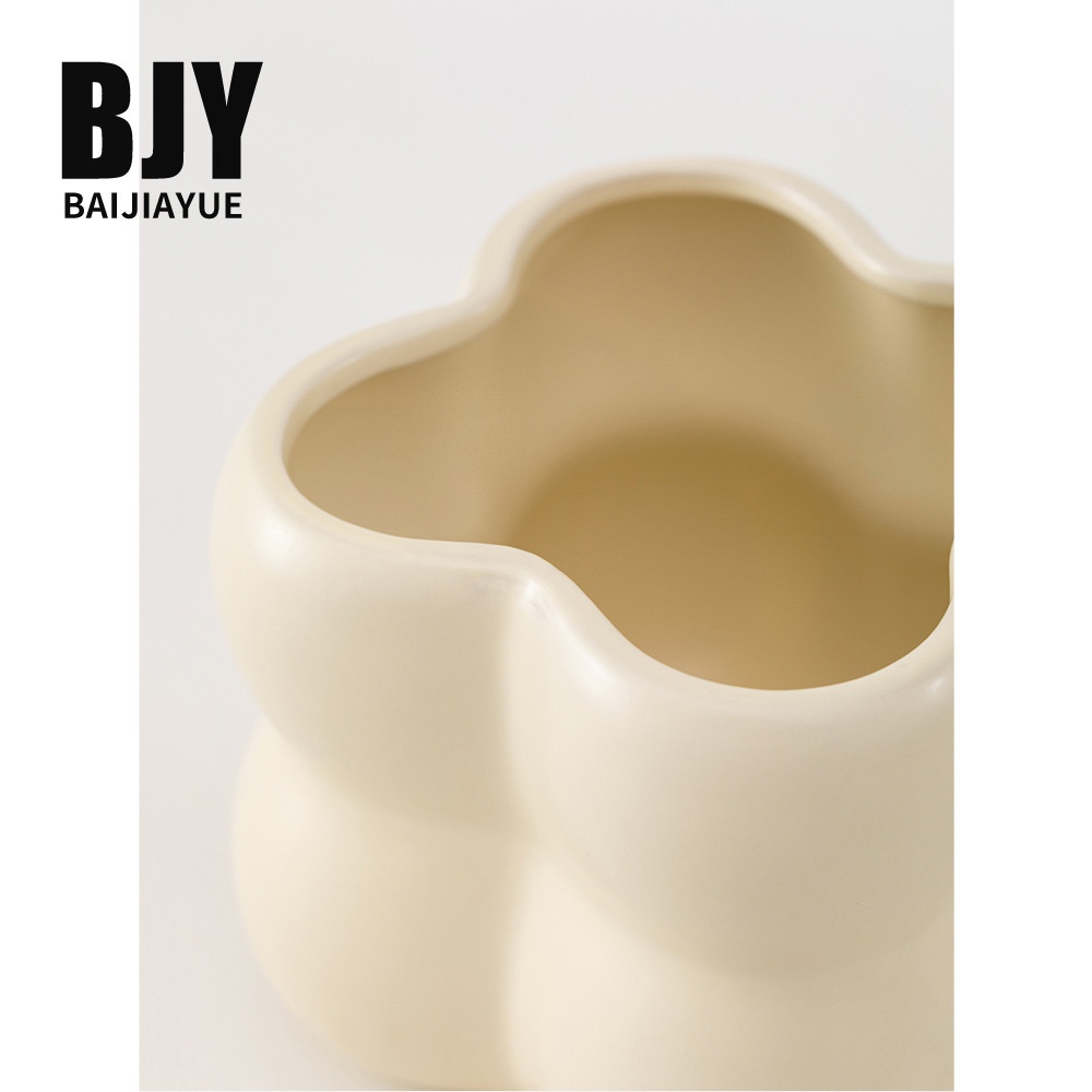 Bojiayue Modern Creative Four-square Spherical Ceramic Flowerpot Cream Indoor Home Decoration Pot