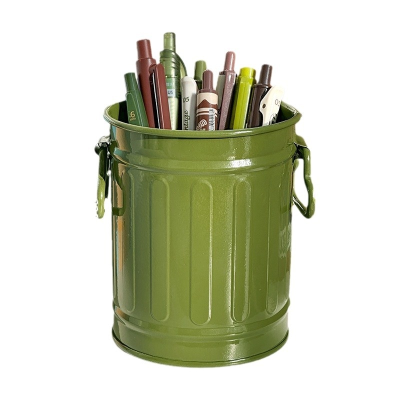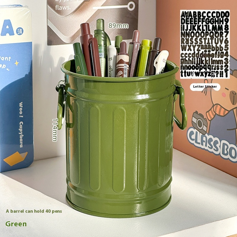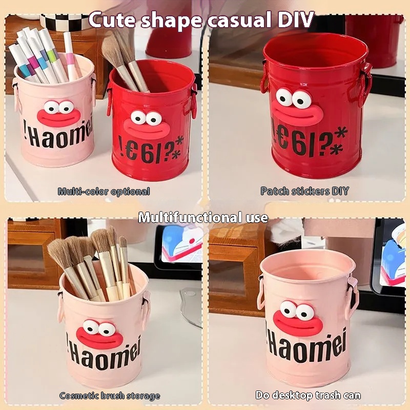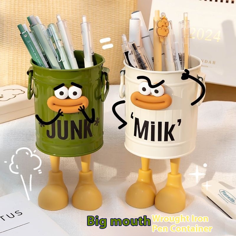 Creative Iron Pen Holder Student Desktop Storage Box Office Pen Barrel Super Cute With Feet Big Mouth Stationery Storage Pen Box
