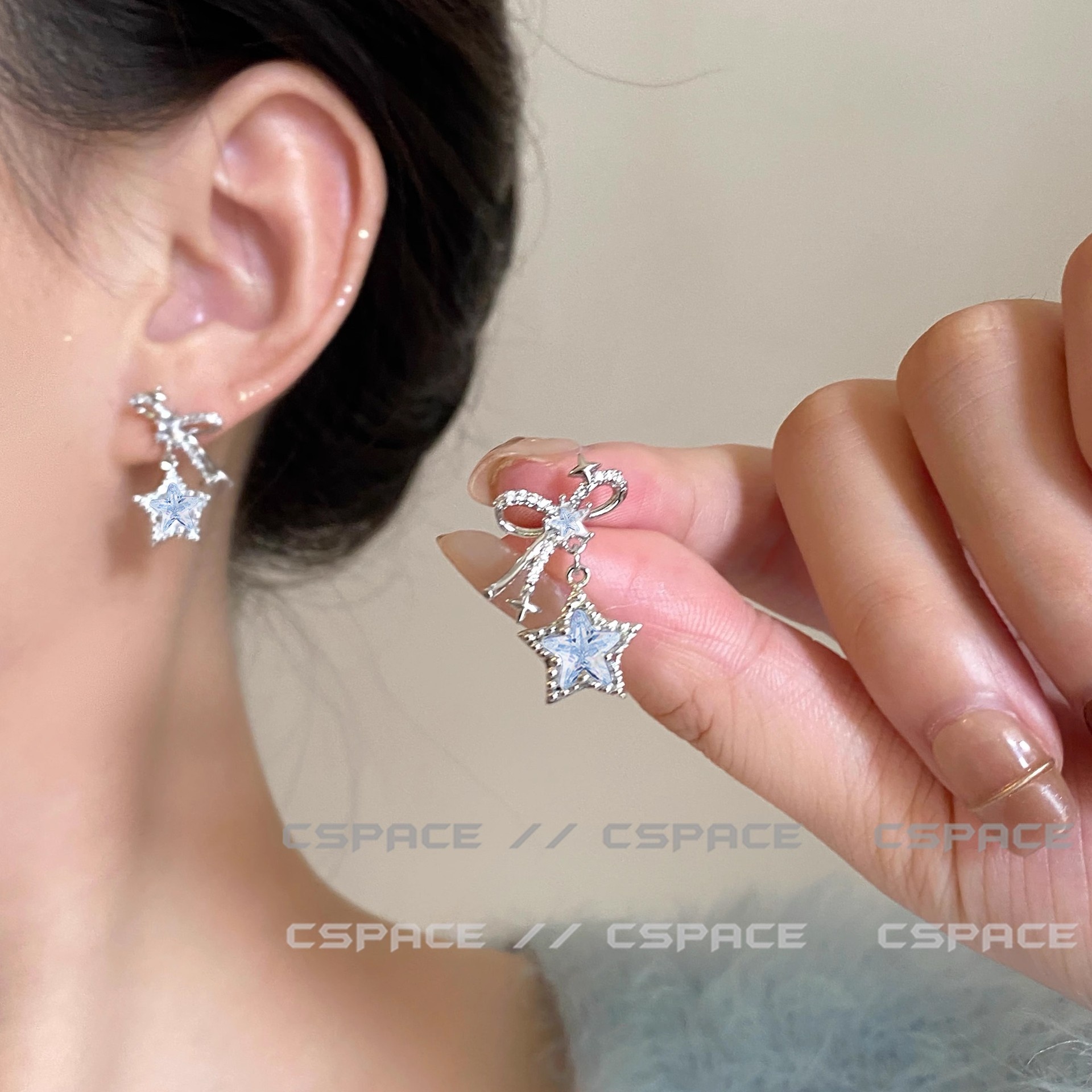 Light Luxury Sparkling Diamond Meteor Earrings Bow Star Earrings Super Sparkling High-end Five-pointed Star Tassel Niche Earrings