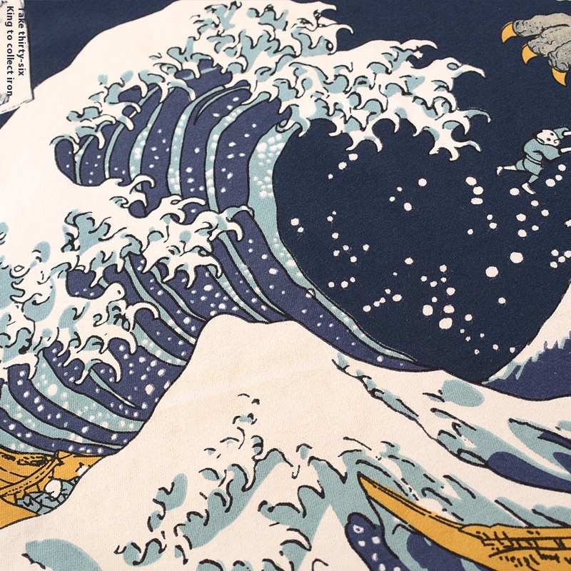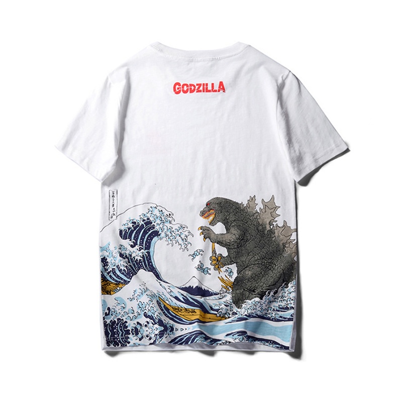 Japanesey Men's Clothing Harajuku Style Godzilla Non-sense Printed Men's Short-sleeved T-shirt Ukiyoe Couple T-shirt