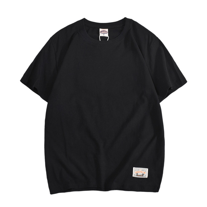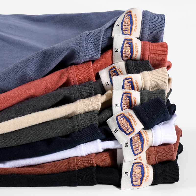 Carbon Brushed Foreign Trade Men's T-shirt Solid Color Short-sleeved American Casual Washed Cotton Bottoming Shirt Round Neck T-shirt