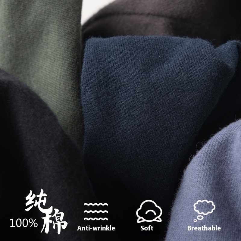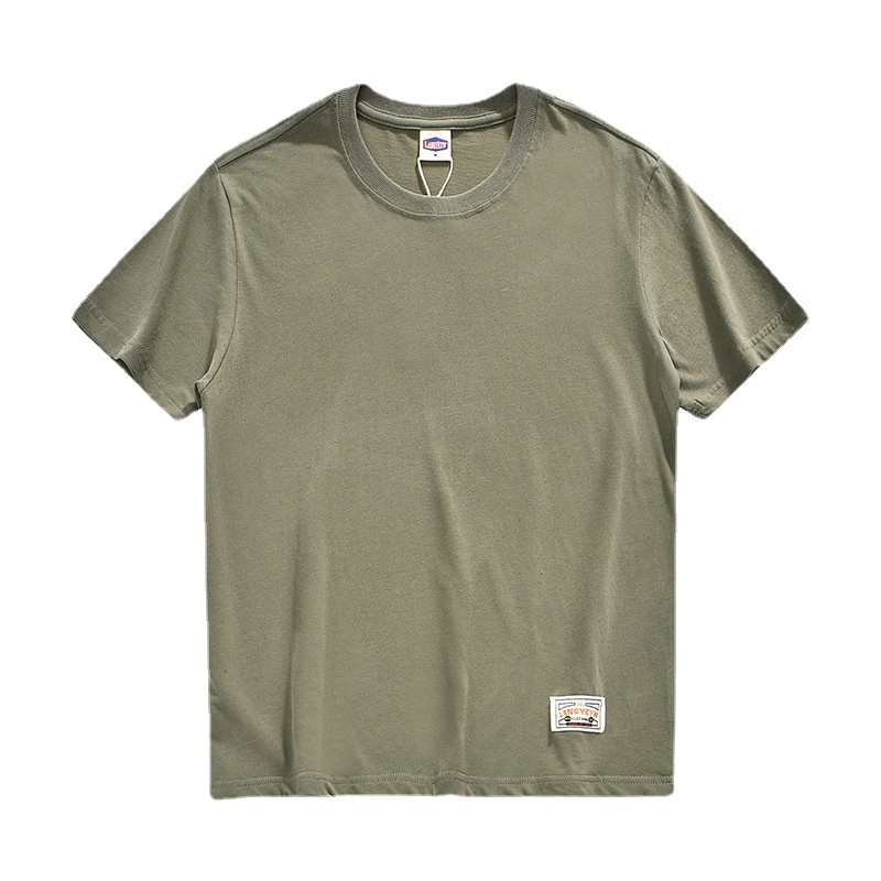 Japanese Men's Solid Color Short-sleeved T-shirt Pure Cotton Men's Round Neck Washed Brushed Basic Bottoming Shirt Loose Top